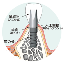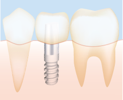 インプラント治療は、歯を失っ た部位に人工の歯根(しこん)を外科手術により埋め込んで、顎(あご)の骨に固着した後、人工の歯冠を上から装着する治療法です。