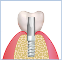 2回法インプラントの場合は、埋め込んだインプラントの頭を露出させる2回目の手術が必要です。 しかし、1回法インプラントであれば手術は1回で済みます。