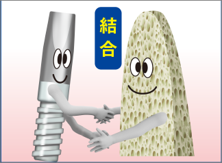 一般のインプラント(主として金属のチタン製)では、骨と結合することがない。
